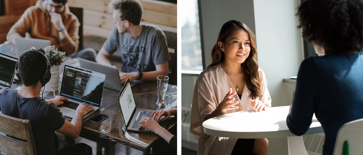 あらゆる場面で役立つ話し方スキルを身に着けるためにグループでワークをしてもらいます。様々な話し方、意見に触れ、自分の良いところ、改善点を洗い出すとともに人の良いところはどんどん真似して吸収していってください。